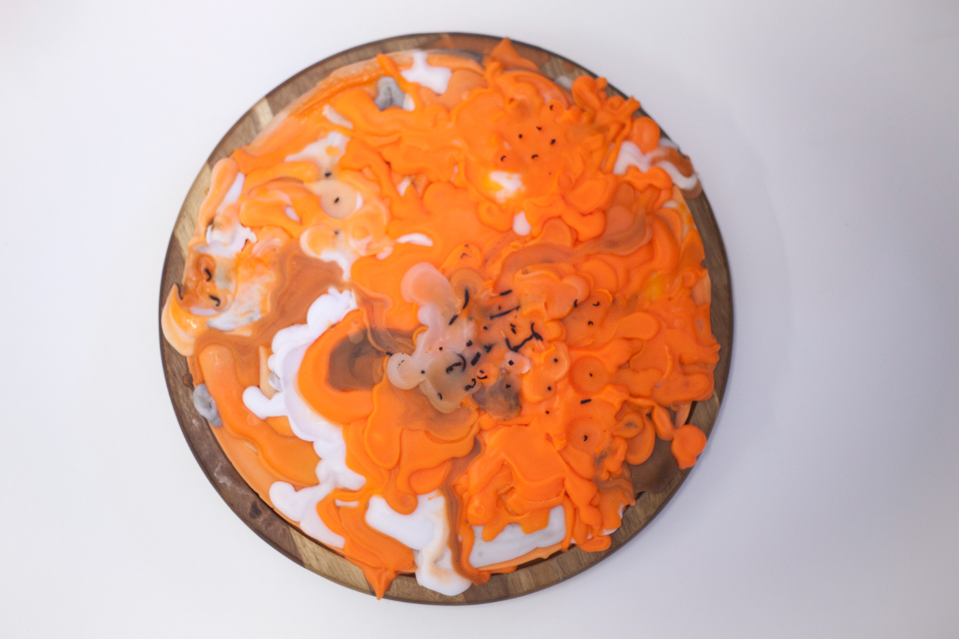 A video of an ice cream sandwich melting over the course of 8 hours. The resulting video looks almost like a still because the additives in store-bought ice cream sandwiches are such that the ice cream never really melts – it just turns into a room-temperature foam-like substance. The scene is staged to be reminiscent of Dutch still-life paintings, noted for their themes of death and decay. The piece draws attention to the idea that it might be more difficult for us to contemplate our own mortality if the food substances around us don’t behave how they should.