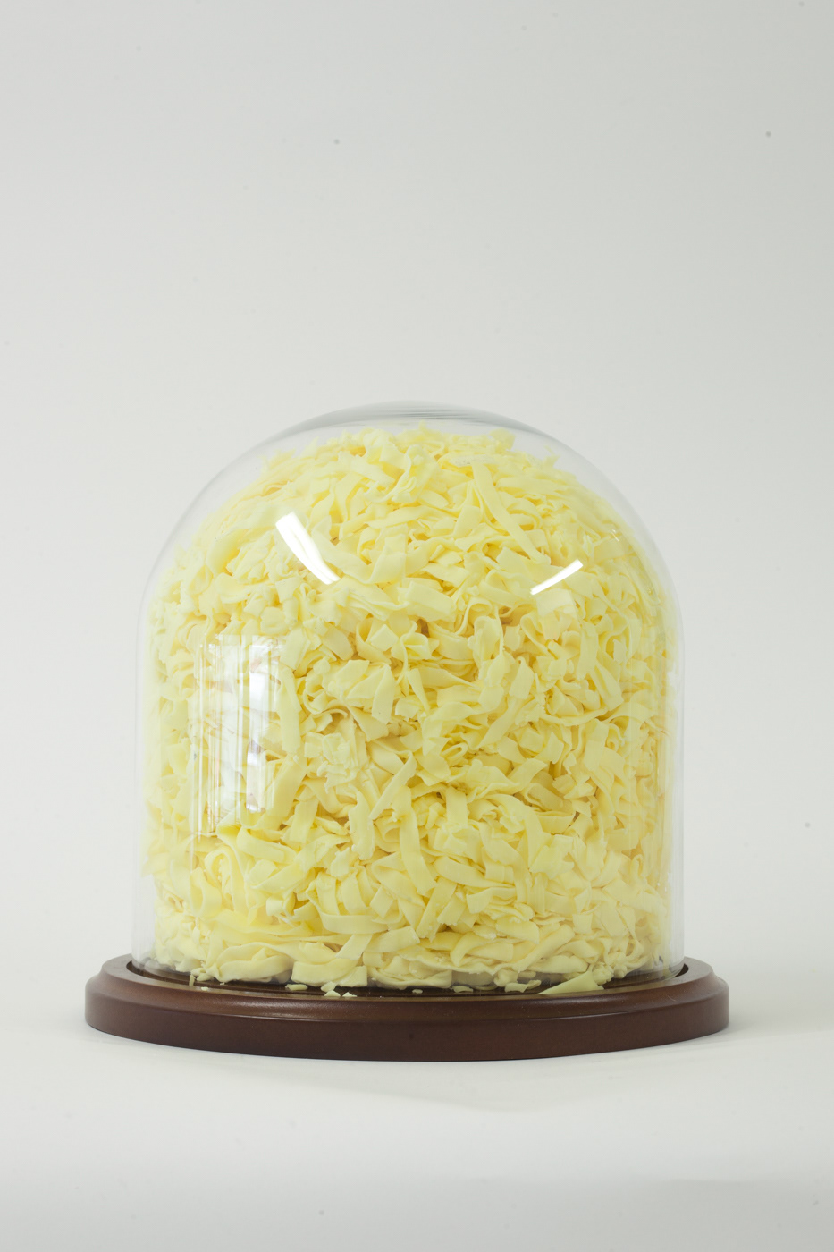 Encased in a bell jar, Send Noods, is the remnant of a multi-hour solitary performance of making handmade noodles. Making a homemade meal from scratch is often touted as a way to nourish the body and soul and alleviate anxiety. Can simply going through the motions and creating the food in a way that is ultimately inedible prolong the benefits of the process, or without the final step of consumption does the whole process fall flat?