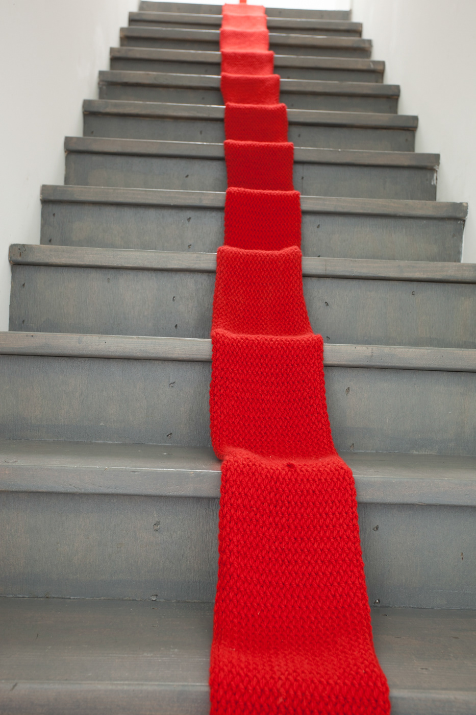 A scarf if loom-knitted for 29 hours and 21 minutes, the full duration of Season 6 of Love Island: UK, highlighting a contrast in the activities of passively watching and actively making.